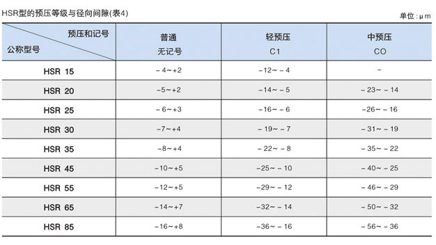 预压等级与径向间隙